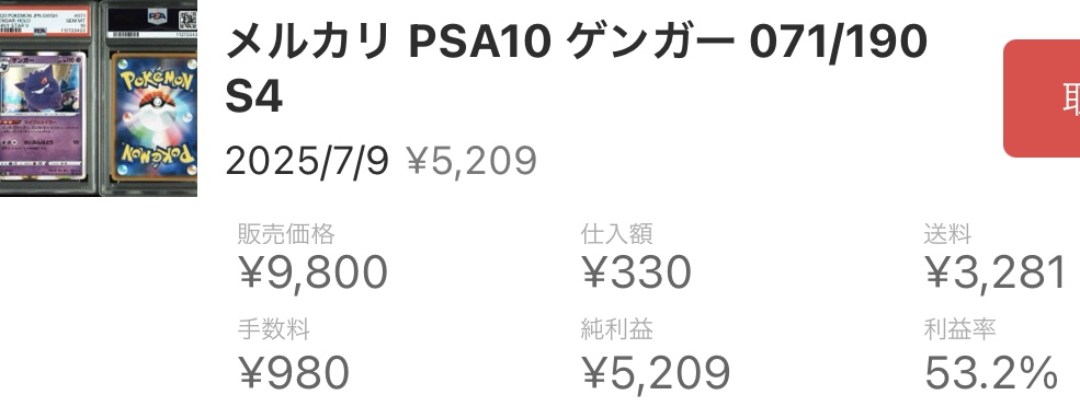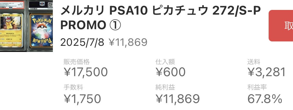 PSA10で7,500〜17,500円で販売可能 という実績があり